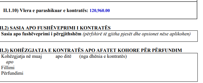 Kontrata publike kornizë është paraparë të bëhet për 12 muaj, ndërsa vlera e parashikuar është 120,960 euro, transmeton IndeksOnline.