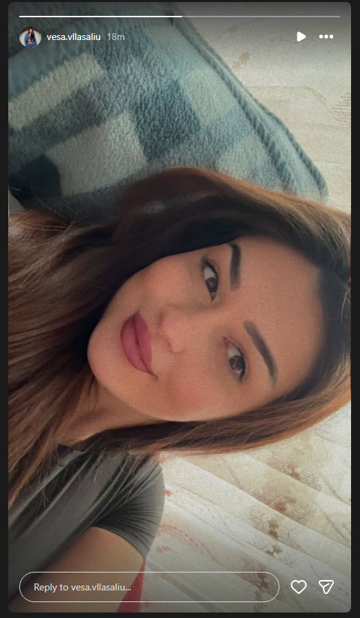 Në selfien e ndarë shihet se Vesa duket më e plotë, pasi shihet qartë se ka shtuar kilogramë në pritje të ëmbël./Indeksonline/