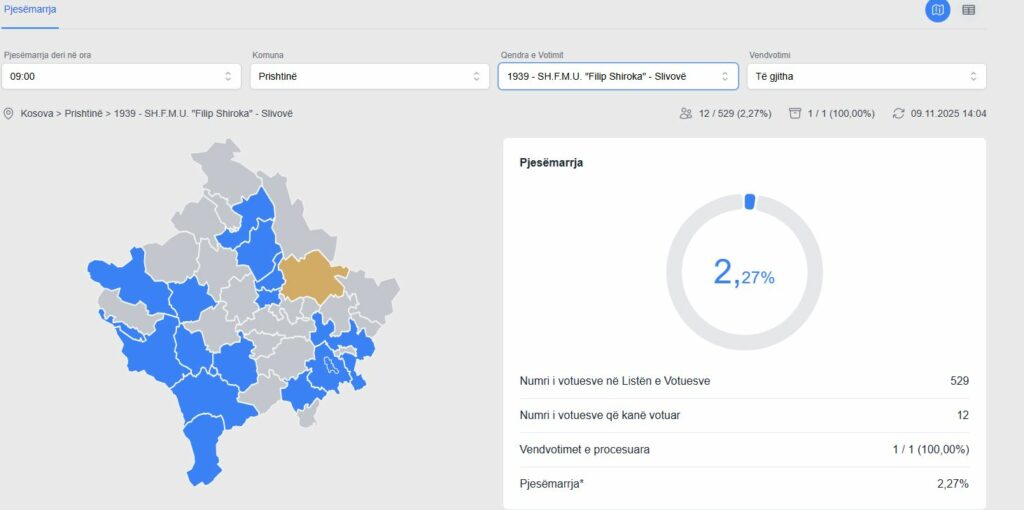 Mirëpo ajo se çka bien në sy është se në shkollën ‘’Filip Shiroka’’ në Slivovë nga 529 votues kanë votur vetëm 12 persona deri në ora 14:04 minuta./Indeksonline/
