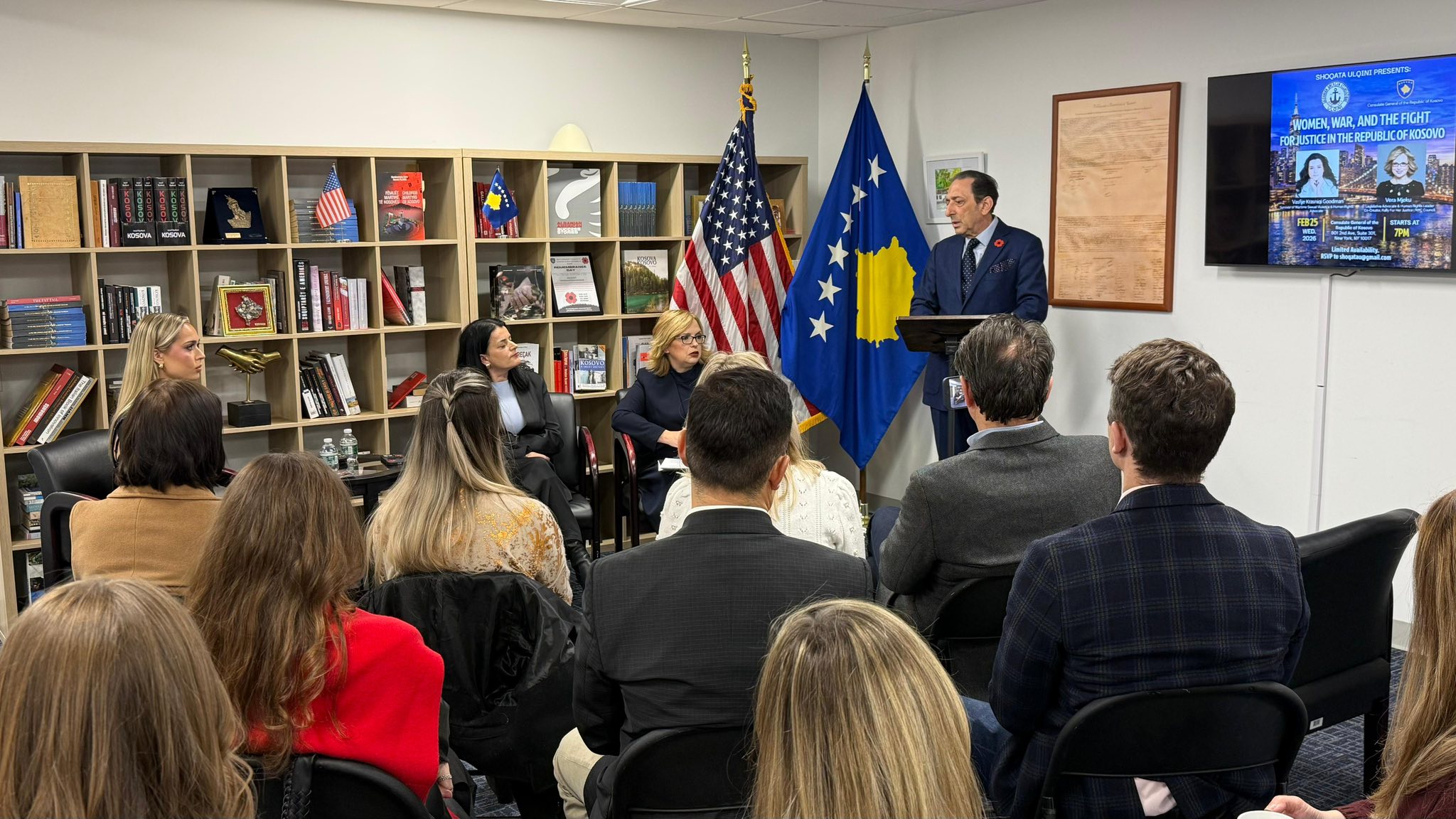Në Konsullatën e Republikës së Kosovës në Nju-Jork u mbajt një diskutim me temën “Gratë, Lufta dhe Lufta për Drejtësi në Republikën e Kosovës”.