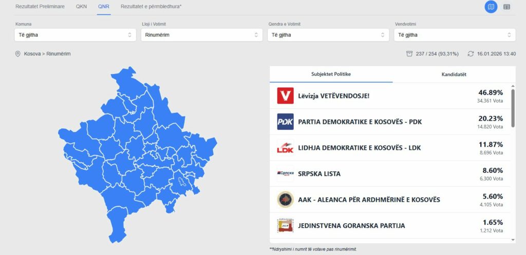 Në QNR rinumërohen 237 nga 914 vendvotimet, prin VV-ja