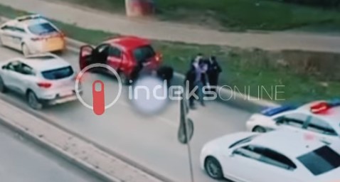 Indeksonline ka siguruar pamjet kur policia arreston skaj rruge të dyshuarin, gjersa përballë tij ndodhej gruaja e shtrirë pas dhunës së ushtruar. /Indeksonline/