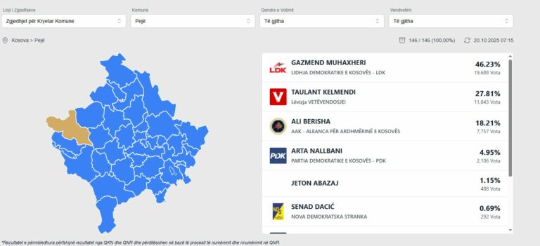 Janë numëruar 100% e votave me postë në komunën e Pejës.