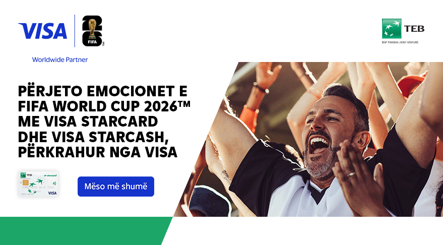 Si partner ekskluziv i Visa-s për territorin e Republikës së Kosovës, Starcard – kartela më e përdorur bankare në vend, pjesë e TEB Sh.A. – është zgjedhur për të qenë në qendër të fushatës promovuese të një prej ngjarjeve më të mëdha sportive globale: FIFA World Cup 2026, që zhvillohet në SHBA, Meksikë dhe Kanada.