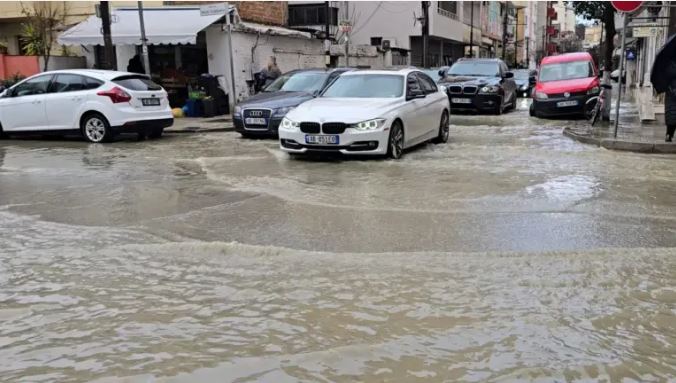 Përmbyten rrugët e Durrësit, vështirësi në lëvizje