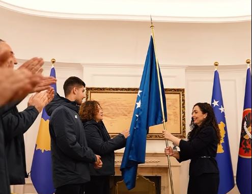 Presidentja Osmani ia dorëzon flamurin e Kosovës skiatorëve për Lojërat Olimpike Dimërore