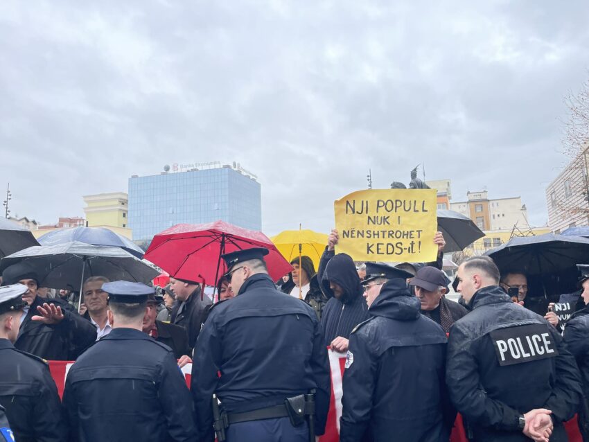 Ndërkohë që protesta ka filluar në ora 13:00 para objektit të KEDS, e ku aty është arrestuar një i moshuar./Indeksonline/