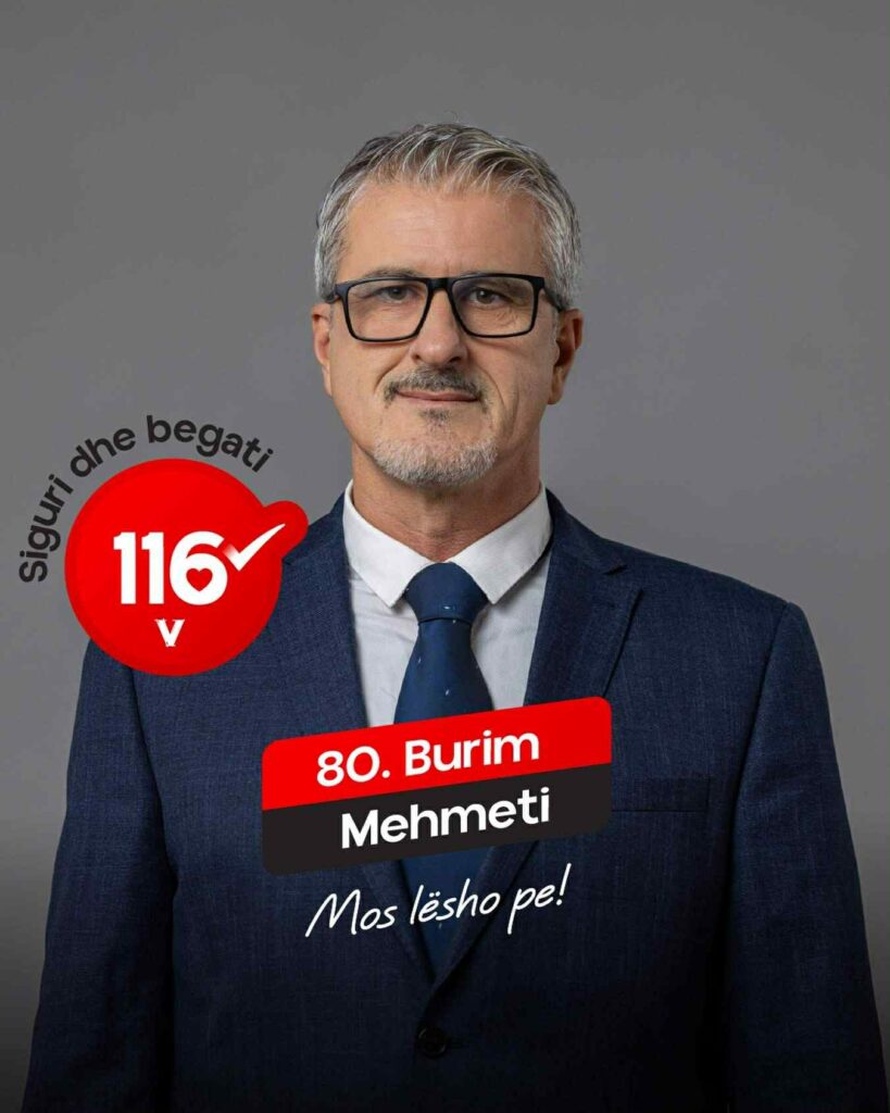 Burim Mehmeti, kandidat me numrin 80 nga radhët e Lëvizjes Vetëvendosje, paraqitet si një nga figurat me përvojë më të gjatë profesionale në garën zgjedhore.