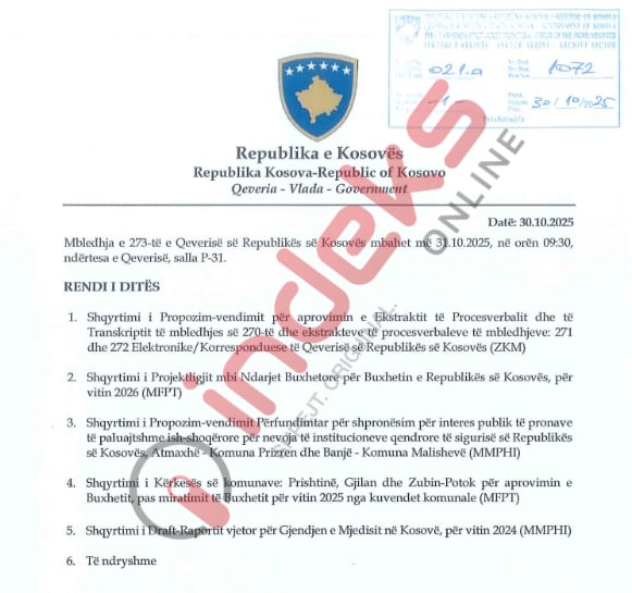 IndeksOnline ka siguruar edhe pikat e rëndit të ditës të cilat pritet të diskutohen në këtë mbledhje.