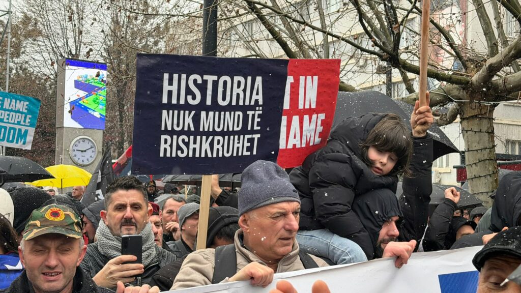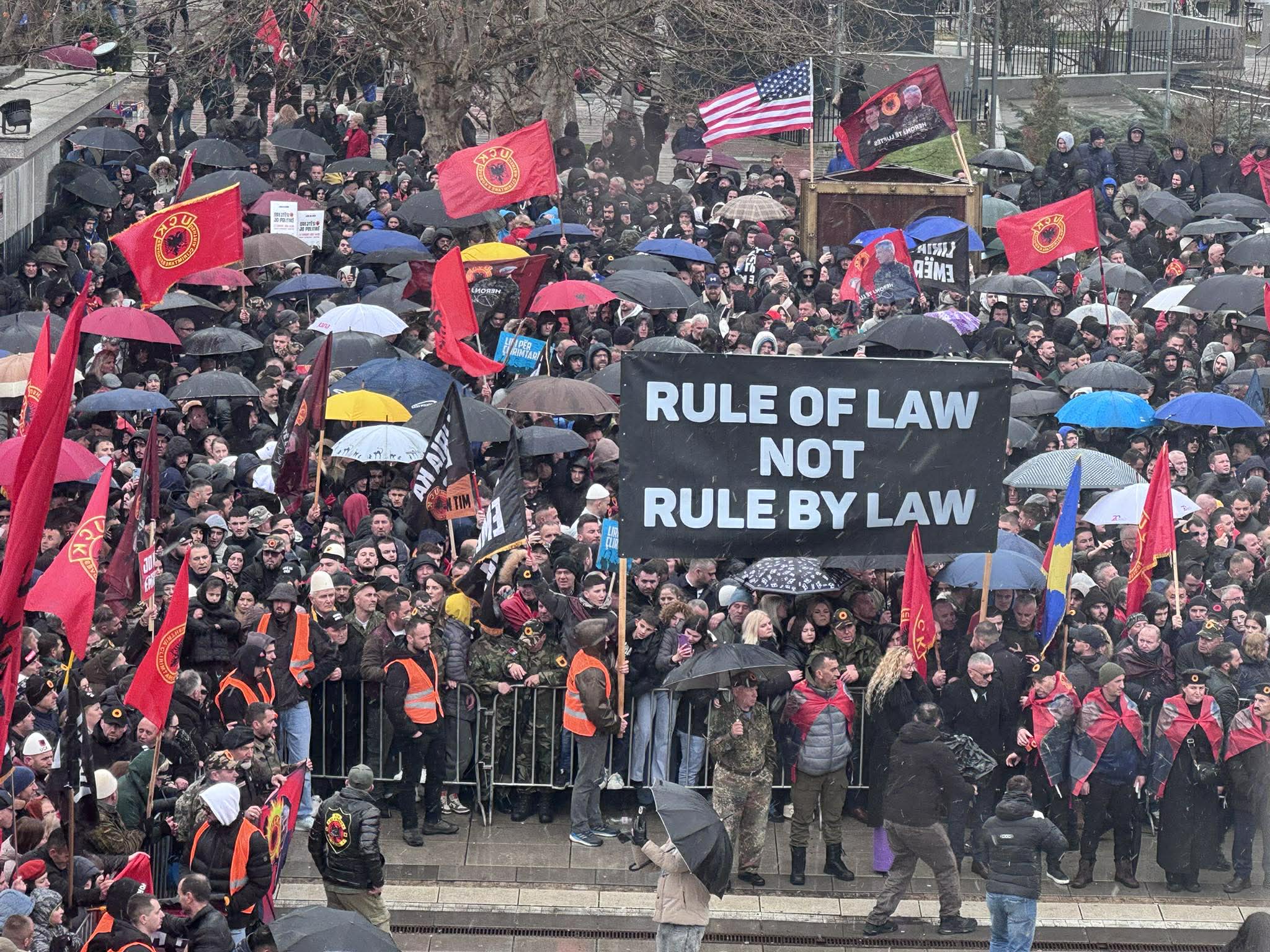 Protestues të shumtë me flamuj të Ushtrisë Çlirimtare të Kosovës , me thirrjet UÇK-UÇK, e me pankarta në duar “Në emer të popullit liri”, e “Historia nuk mund të rishkruhet”, kanë marshuar sheshin e Prishtinës.