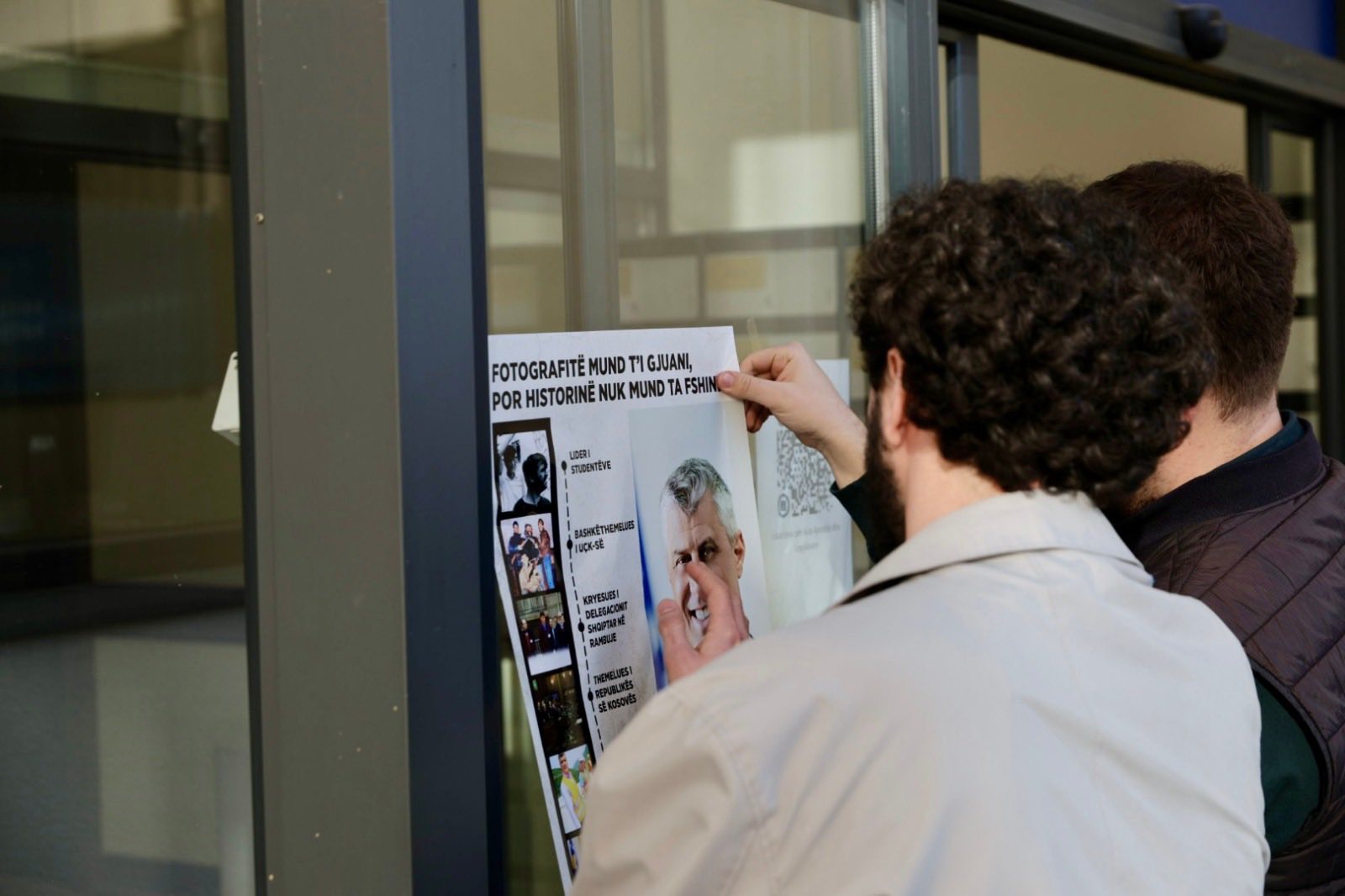Sipas komunikatës, gjatë aksionit të sotëm, Rinia Demokratike e Kosovës vendosi një fotografi të Thaçit të shoqëruar me disa nga momentet kyçe të rrugëtimit të tij politik dhe shtetëror – nga lider i studentëve dhe bashkëthemelues i UÇK-së, te kryesues i delegacionit shqiptar në Rambouillet Conference, si dhe më pas kryeministër dhe president i Republikës së Kosovës.