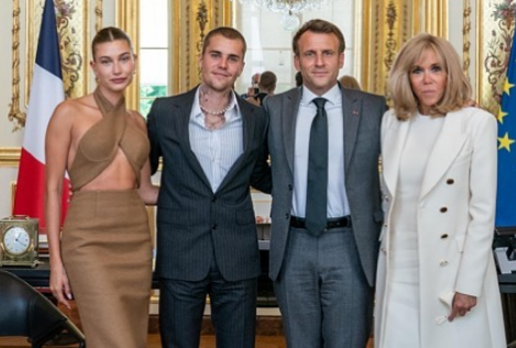 Justin Bieber dhe gruaja e tij takohen me presidentin francez