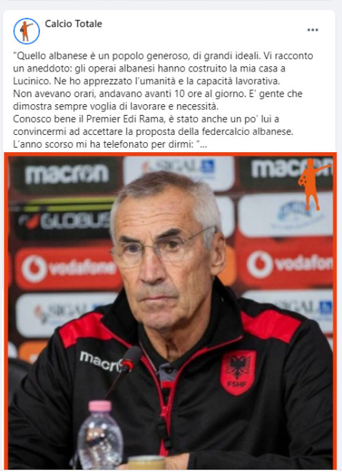 Më në fund, nuk mund të harrojmë bujarinë, solidaritetin dhe vlerësimin e tyre të treguar ndaj Italisë në kohën e pandemisë. ‘Katar 2022’ e meriton më shumë se kushdo. Përpara Shqipëri!”