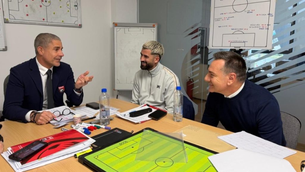 Gjatë qëndrimit në Itali, trajneri zhvilloi edhe një takim me kapitenin Berat Gjimshiti, ndërsa në ambientet e Federatës Shqiptare të Futbollit priti për një vizitë Elseid Hysaj, në kuadër të komunikimit me kapitenët e ekipit përpara ndeshjes së “play-off”-it.