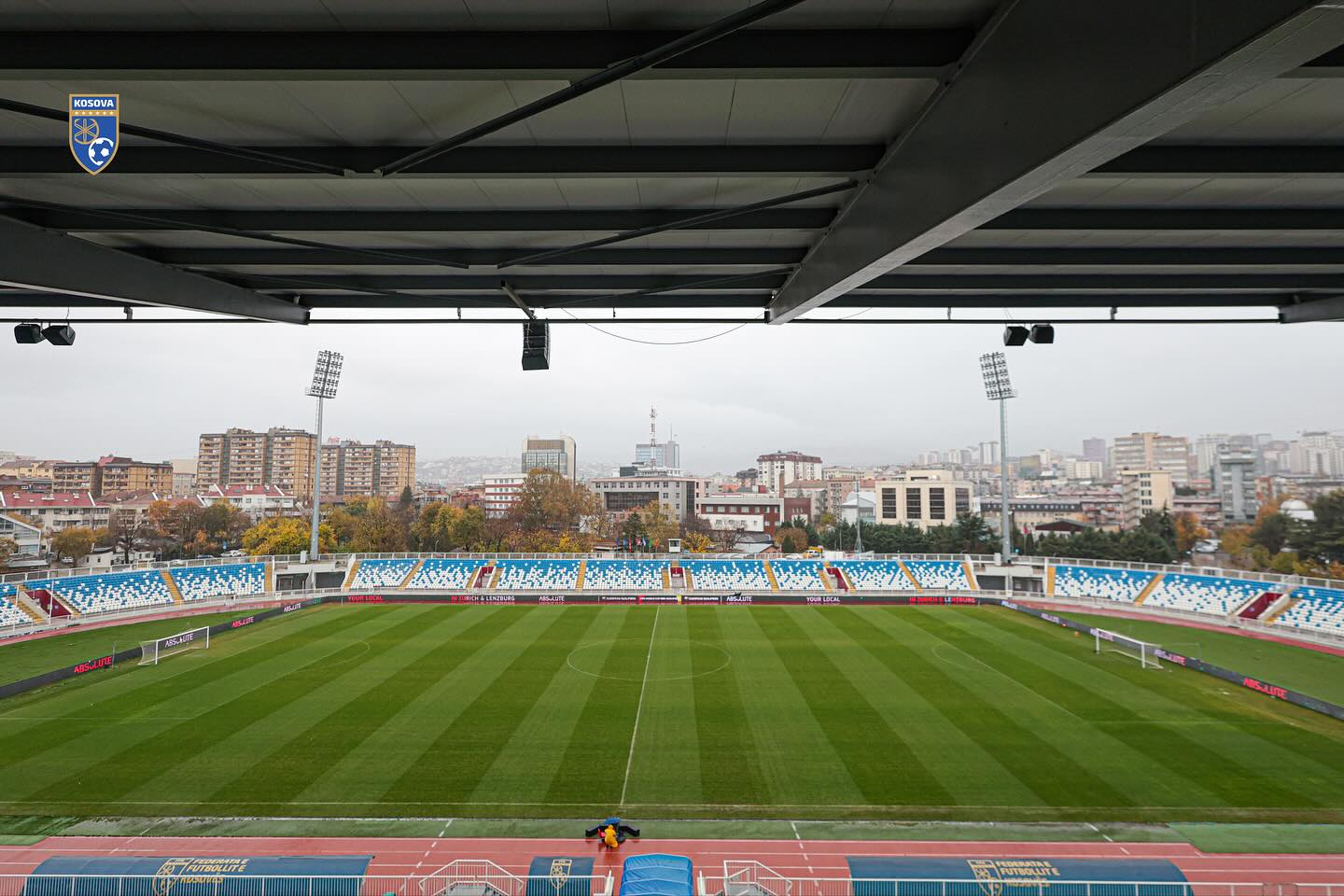 Duke postuar fotografi të stadiumit, Ademi njofoti se fusha është në gjendje të rregullt, pavarësisht reshjeve të shiut, teksa tribunat janë gati të mbushen me emocione e brohorima.