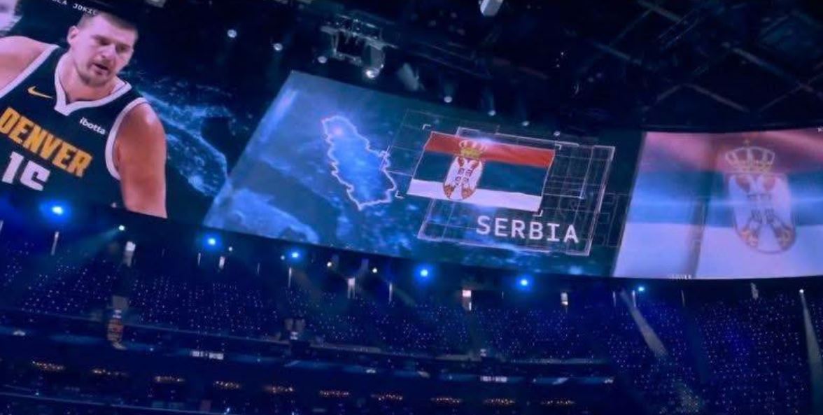 Në momentin kur u prezantua basketbollisti serb, Nikola Jokiq – në ekran u shfaq flamuri i Serbisë, por që paraqiste edhe Kosovën si pjesë të saj.