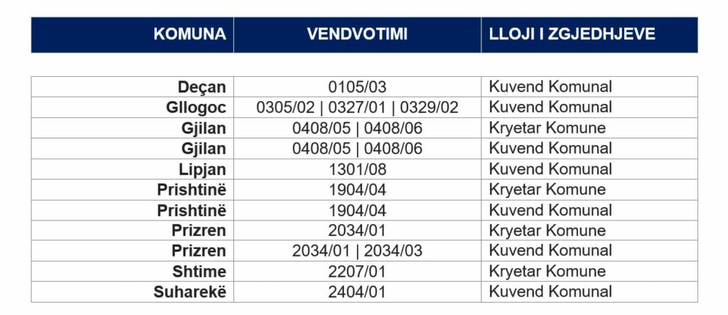 Nga ky numër i përgjithshëm, 5 kuti votimi u përkasin zgjedhjeve për kryetarë të komunave, ndërsa 11 kuti të tjera janë nga zgjedhjet për kuvendet komunale.