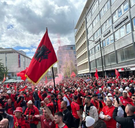 Tifozët shqiptarë “pushtojnë” Dortmundin, festë e madhe para ndeshjes me Italinë