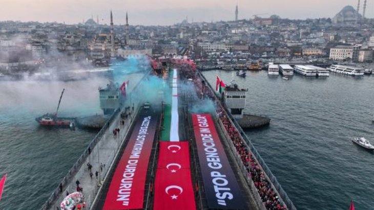 Rreth 500 mijë njerëz filluan të mblidheshin në ditën e parë të vitit të ri, në Urën e Galatës në Stamboll për një marshim në mbështetje të Palestinës.