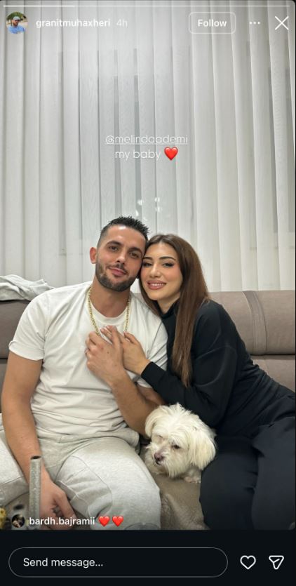 Sonte, Melinda ka publikuar një fotografi ku shfaqet e lumtur në krahët e menaxherit të saj njëherësh të fejuarit të saj.