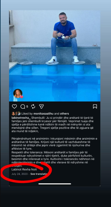 Por, një fotografi që po qarkullon në rrjetet sociale, shihet që këngëtari qëndron pranë një pishine si edhe ka përdorur mbishkrimin “Labinot Rexha- Noti”, për të cilën deklaroi se nuk dëshiron ta thërrisnin.