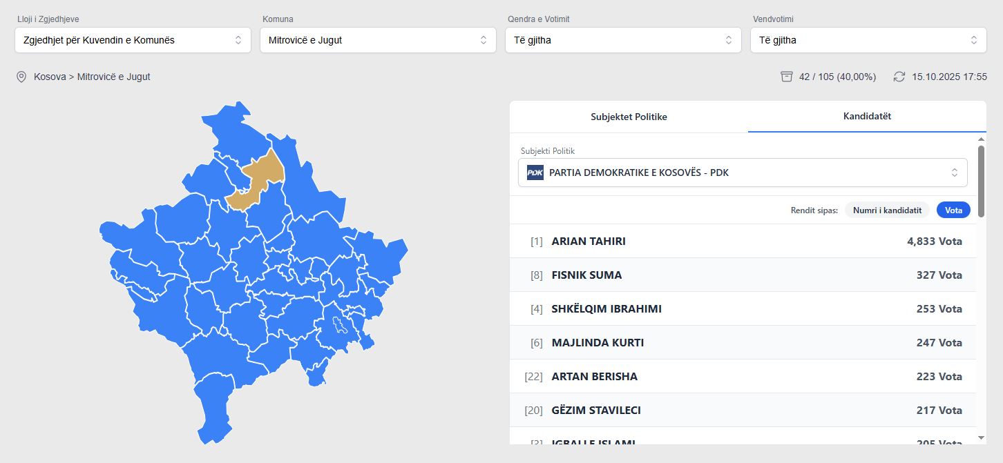 Top 5-shja e PDK-së në Mitrovicë, shumë më e votuar për asamble, se ajo e VV-së