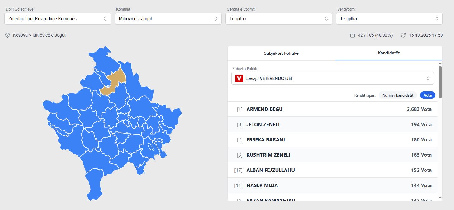 I pari i listës Armend Begu është votuar 2 mijë e 683 herë, kurse i dyti është Jeton Zeneli – 194 vota.