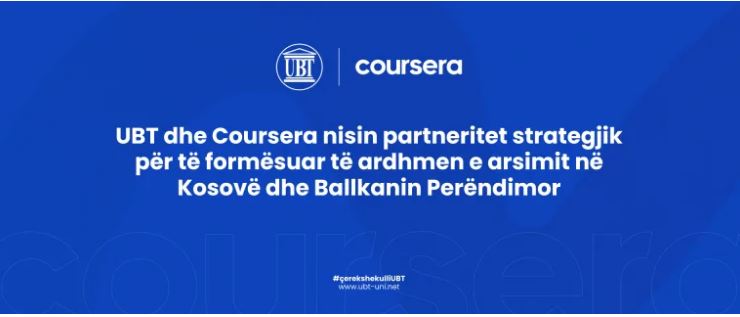 UBT-ja ka kënaqësinë të njoftojë lansimin e një partneriteti strategjik me Coursera, platformën lider botërore të mësimit online. Ky bashkëpunim synon të rrisë cilësinë e arsimit, punësimit dhe zhvillimin e aftësive të së ardhmes për studentët, stafin akademik dhe administrativ në Kosovë dhe në mbarë Ballkanin Perëndimor.