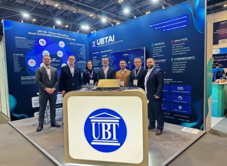 Si i vetmi institucion nga rajoni, UBT po prezantohet me hapësirën e vet në panairin më të madh botëror të teknologjisë në arsim, BETT 2026 në Londër, krahas kompanive globale si Google, Meta dhe të tjera.