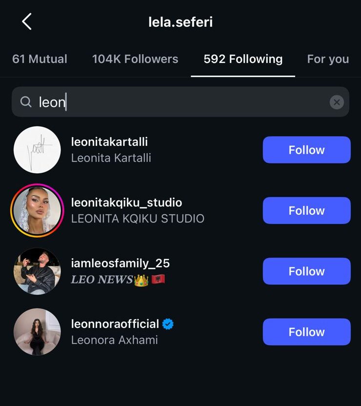 Pas këtij veprimi, Lela ka ndaluar së ndjekuri Leon në Instagram, duke konfirmuar indirekt se diçka nuk po shkon mes tyre.
