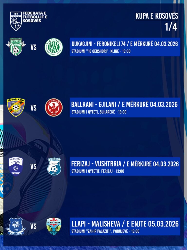 Të tria këto ndeshje zhvillohet nga ora 13:00, derisa ndeshja mes Llapit dhe Malisheves luhet të enjten./IndeksOnline/