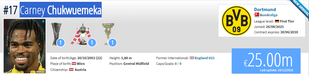 Futbollisti i Borussia Dortmundit, Carney Chukëuemeka ka ndryshuar kombëtare.