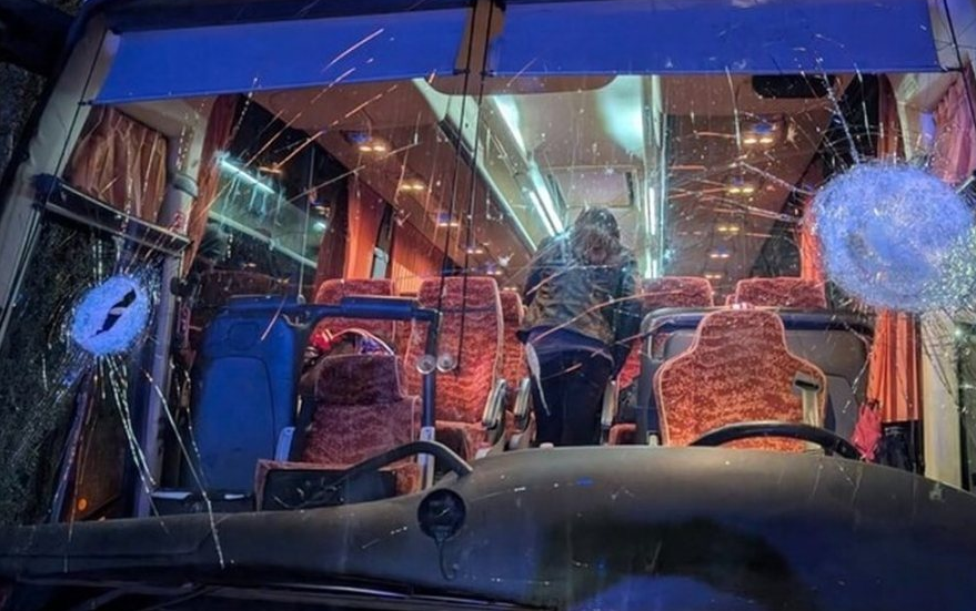 Pas ndeshjes, autobusi u largua nga arena dhe papritmas disa tifozë të ekipit Sebastiani Basket nga Rieti hodhën gurë, gurë dhe sende të tjera drejt autobusit ndërsa ai po largohej nga qyteti pas ndeshjes së luajtur në PalaSojourner. Autobusi u godit nga gurë të hedhur në pjesën e përparme, dhe xhami i përparmë u thye nga një gur, pikërisht në lartësinë e sediljes ku shoferi me shumë gjasa ishte ulur pranë shoferit. Xhami i përparmë është gjithashtu i çarë, por jo i thyer në anën e shoferit.