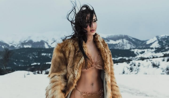 Fotografitë i ka realizuar në një zonë malore të mbuluar me borë, ku shihet e zhveshur në bikini, përcjell Indeksonline.
