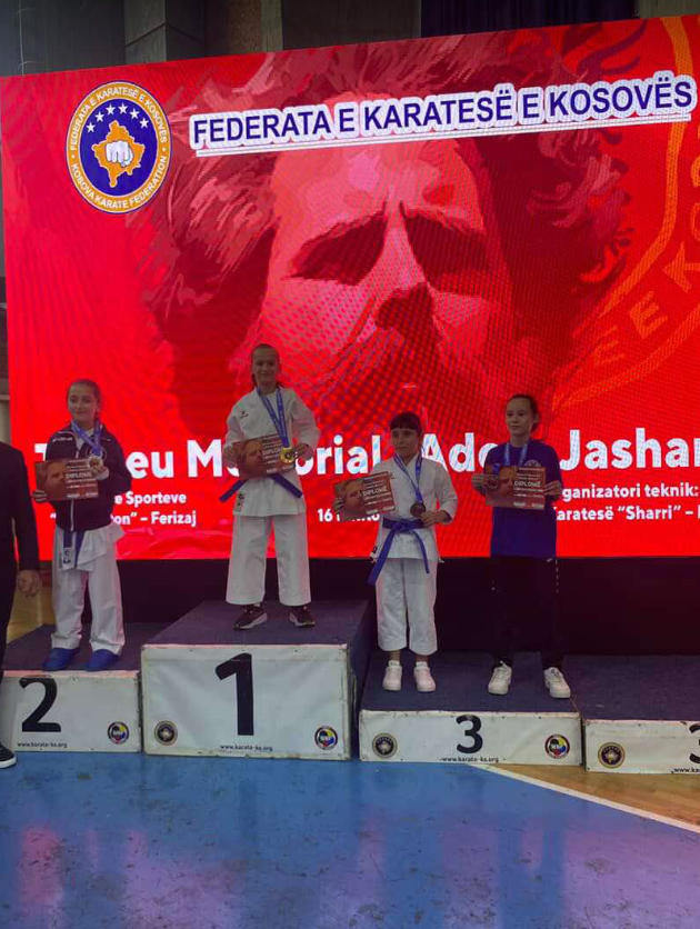 Në kuadër të Turneut Memorial “Adem Jashari”, i cili u mbajt më 16 Nëntor 2025, në Pallatin e sporteve “Bill Clinton” – Ferizaj, talentja e re e karatesë Tringa Mustafa shkëlqeu duke rrëmbyer vendin e parë në disiplinën Kata, kategoria 10 vjeç.