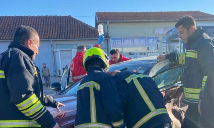 Zjarrfikësit e Gjakovës nxjerrin një të lënduar nga vetura e aksidentuar